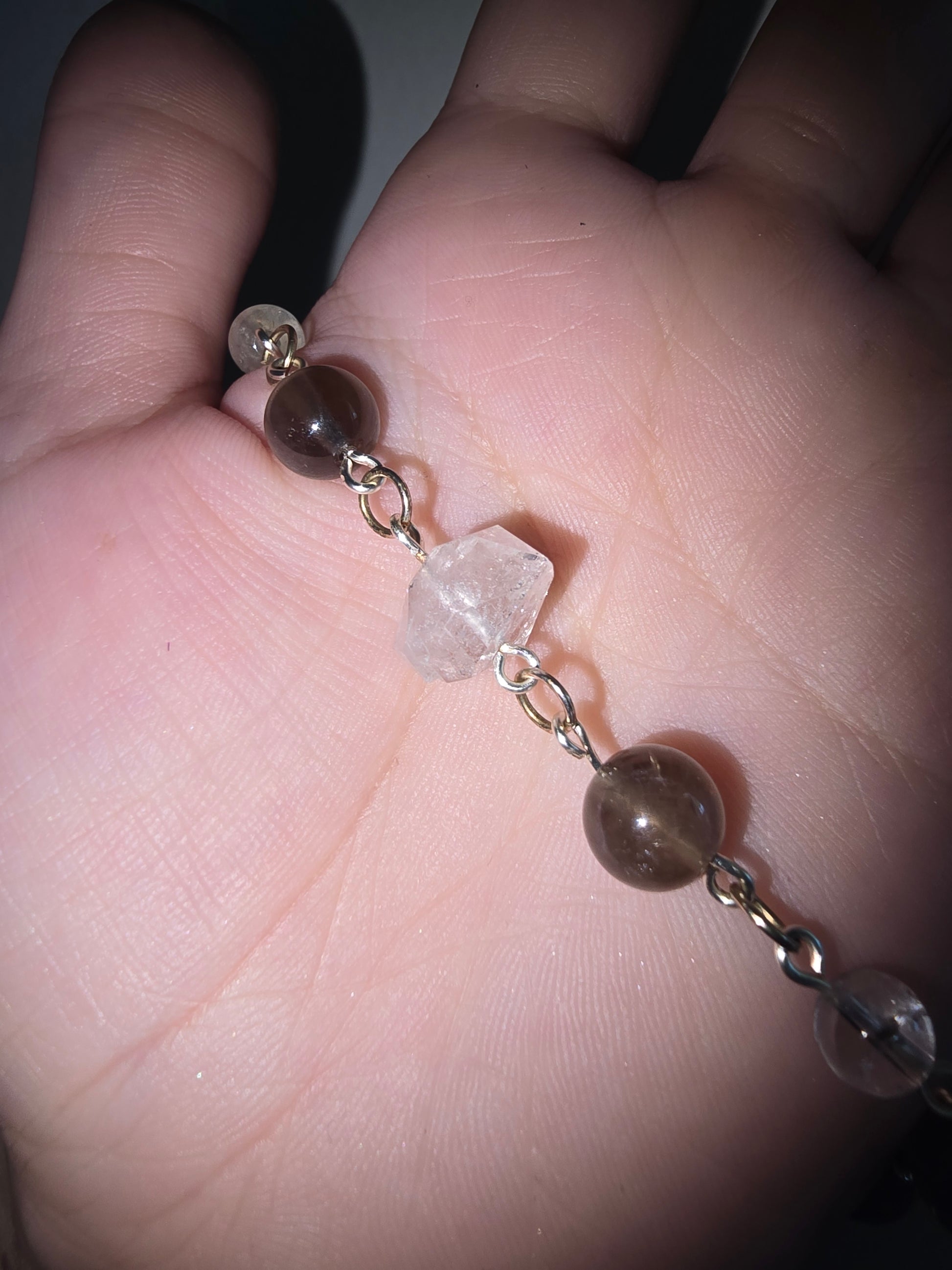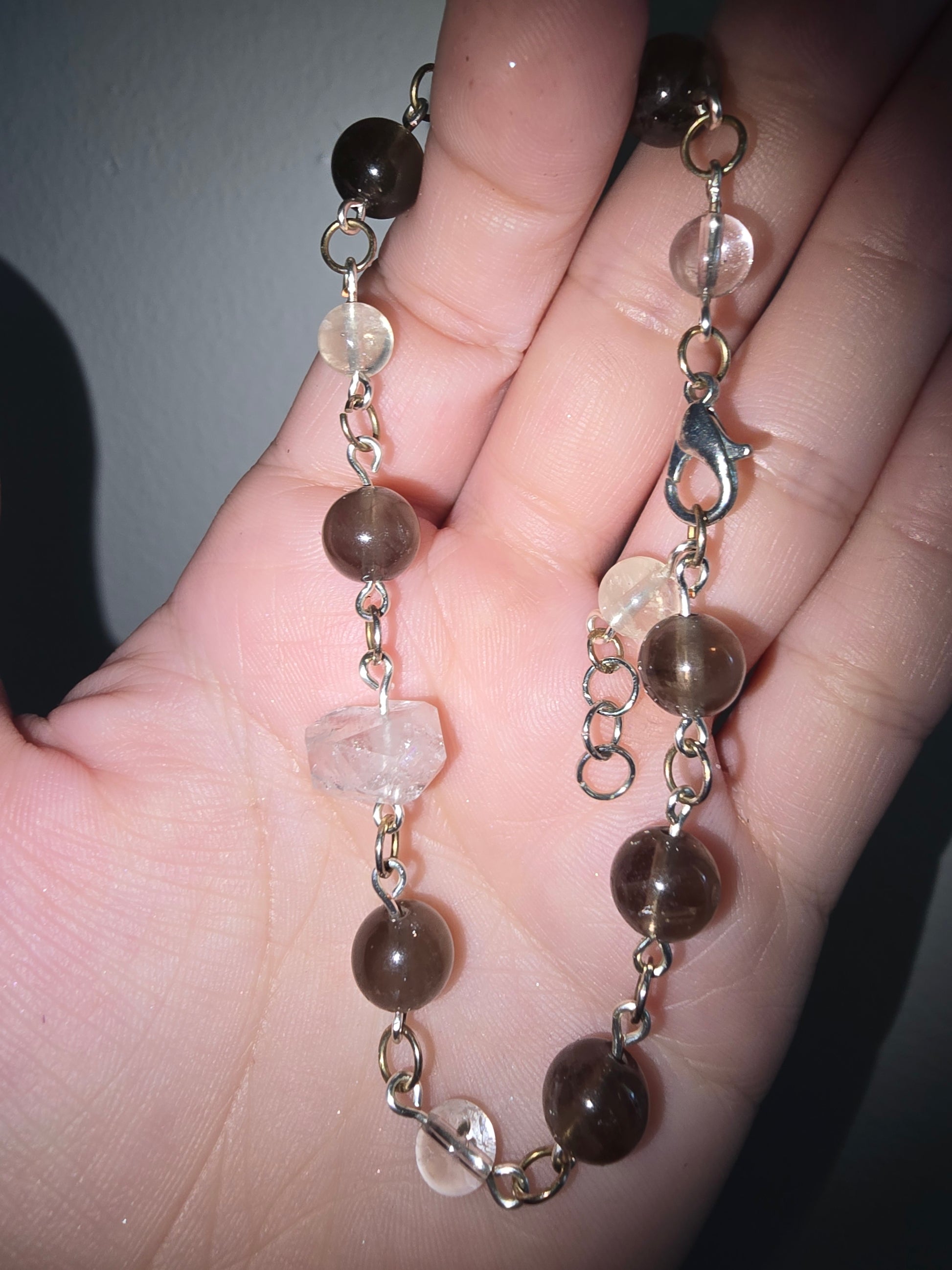 Handmade Beaded Bracelet Smokey Quartz and Diamond Quartz